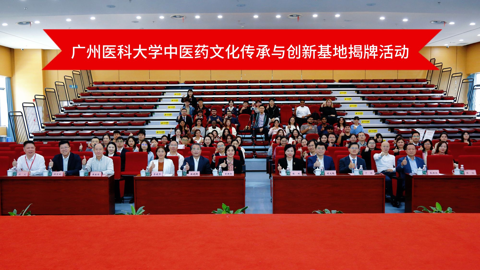 广州市卫生健康委员会党组书记、主任陈斌,党组成员、二级巡视员胡文魁,bat365中国在线平台官方网站党委书记曾颖如、副书记陈晓辉、副校长李建华,基地依托建设单位bat365中国在线平台官方网站附属中医医院党委书记黄颖烽,党委副书记、院长于林,专职党委副书记刘文参加活动,活动由医院纪委书记陈旸主持。市卫健委、bat365、医院相关职能部门负责人,国际教育学院、预科班师生代表也一同见证了基地揭牌。