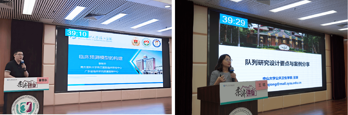 南方医科大学珠江医院曹佩华副研究员针对《临床预测模型的构建》,结合案例分析,详细阐述模型构建流程及关注要点。中山大学公共卫生学院王琼副教授以《队列研究设计要点与案例分享》为主题,结合自身所做的出生队列,剖析研究设计的实战策略。