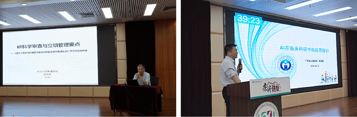 培训中,医院临床研究顾问专家洪明晃教授分享了《IIT科学性审查与立项管理要点》的宝贵经验,系统解析了IIT项目科学性审查与立项管理要求。紧接着,广东省人民医院吴岳恒副研究员围绕《AI在临床科研中的应用探讨》,通过案例展示了AI在研究设计、数据采集与质控、模型构建与验证等方面的实操经验。