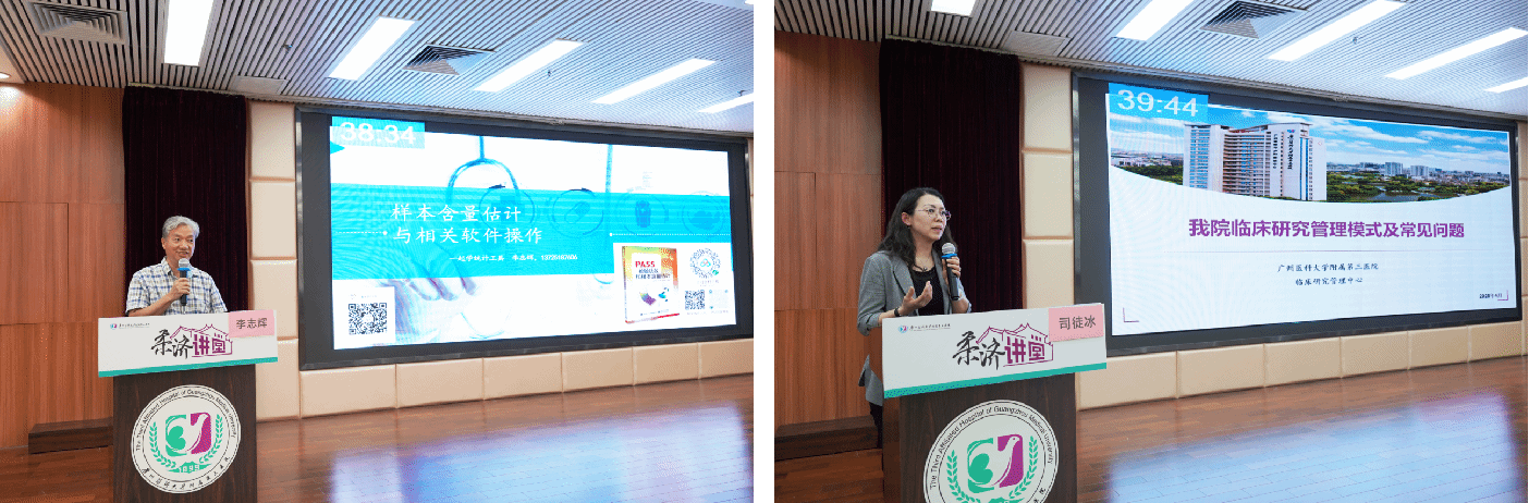 公众号“一起学统计工具”创始人李志辉教授聚焦《样本量估算与相关软件操作》,深入讲解了样本含量估算的重要性以及估算方法,并现场演示PASS软件实战应用。医院临床研究管理中心司徒冰主任立足“医院临床研究管理模式及常见问题”,介绍了医院IIT项目管理全流程以及关注要点,为学员指明了临床研究高效立项的路径。